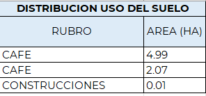 Distribución del área total de la finca/unidad de manejo identificando los diferentes uso de suelo que conforman la finca.
