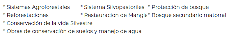 Hace referencia a el sistema que se va a implementar dentro de la finca o parcela del beneficiario/a. se contará con una lista predeterminada para la selección de las medidas a implementar, siendo estas las siguientes: