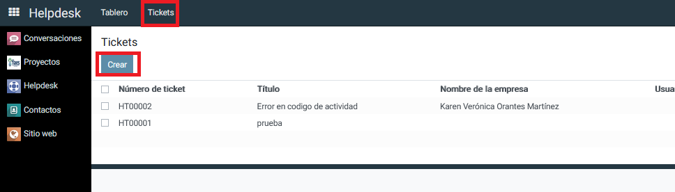 - Ingresar al módulo de Ayuda o “Helpdesk”.