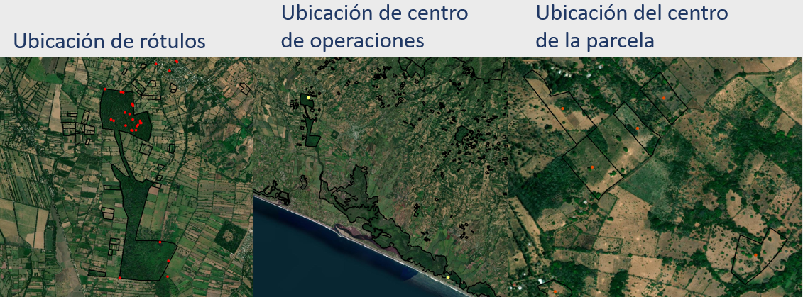 4. Una marca de posición con el nombre del beneficiario que represente el centroide de la parcela.