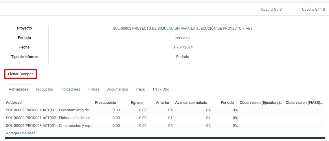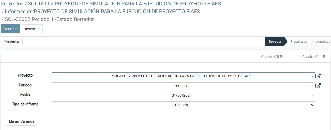Una vez registrado haremos clic en el botón Llenar Campos, lo cual llenará automáticamente los campos del Periodo a Reportar.