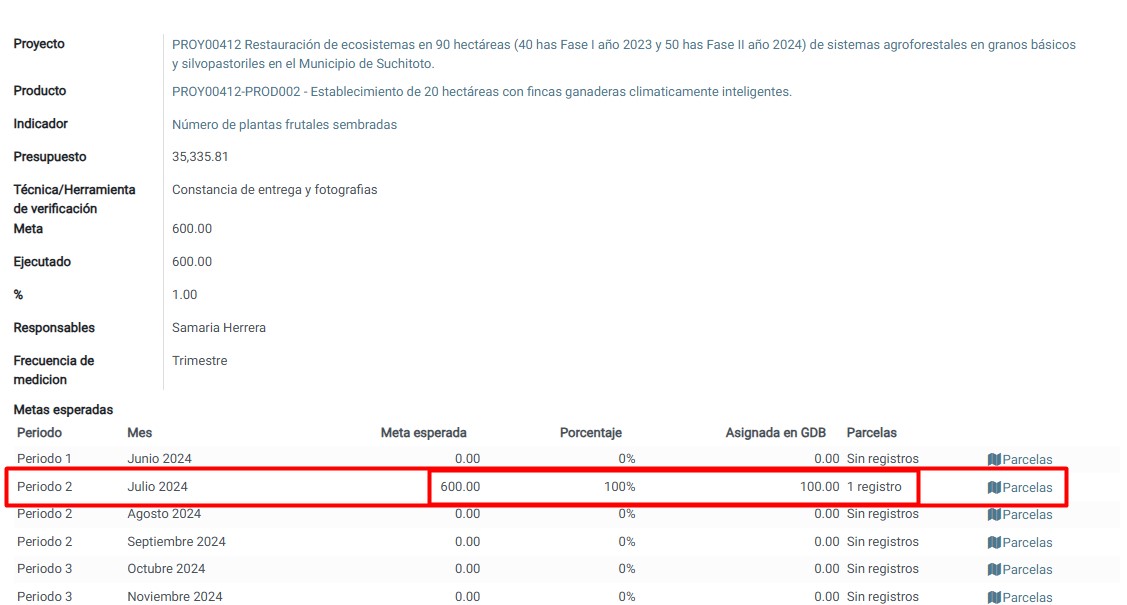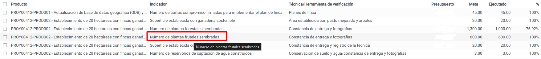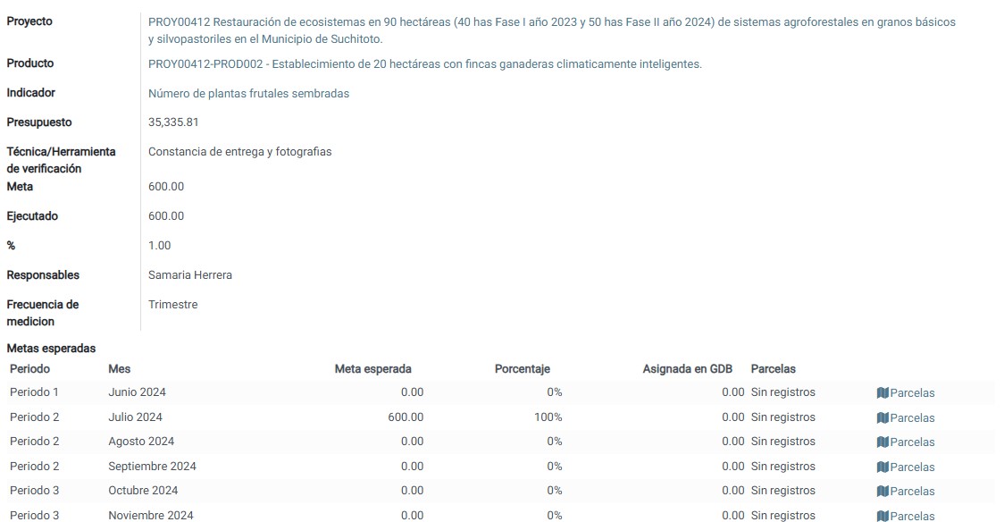 Una vez creados los productores, sus unidades de manejo y las subunidades asociadas que serán beneficiadas por el proyecto, se procederá a ingresar los indicadores, es decir, las actividades ejecutadas dentro del área efectiva.