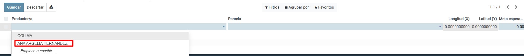 Seleccionaremos el registro del productor que hemos creado con anterioridad