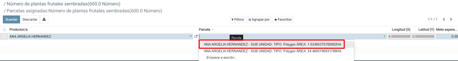 Luego seleccionaremos la parcela o subunidad que hemos realizado nuestras obras practicas