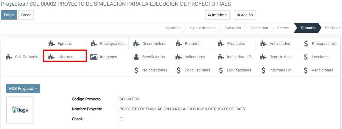 Para poder visualizar nuestros informes de periodo en la ventana principal del proyecto, ingresaremos al Menú Informes